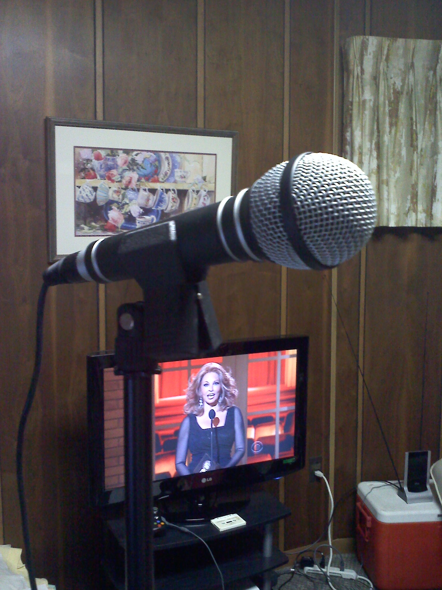However, you will be happy to know, Evan got Rock Band hooked up at the new place, so I think we’ve turned the corner. It works, COD treated Pikachu and me to a round of Green Day and Aerosmith. Microphone is evidence of the set up. Yes, that’s Raquel Welch in the background on the Tony’s. (We’re switching between that and the Boston Victory)